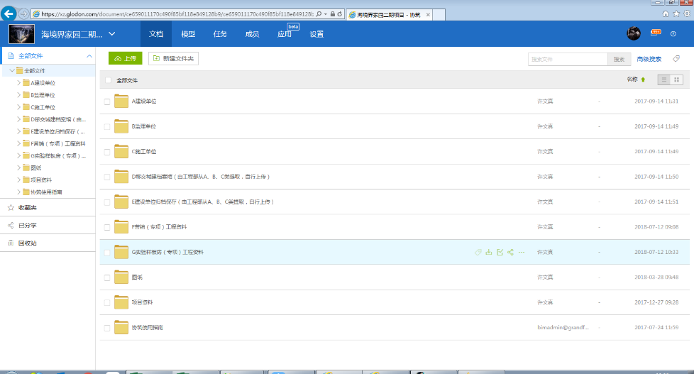 协筑平台的使用使项目资料实现了信息互通,实现了及时性、唯一性、准确性。目前项目上每天,新产生的成果性资料都会及时上传。目前使用最多的模块依然是文档模块,通过上传资料实现图纸的即刻迭代更新,之前极个别发生的图纸变更或其他资料迟迟下发不到施工现场的情况也得到了极大的缓解。目前在资料协同管理使用方面较好,总承包及监理单位都运用的较为不错。